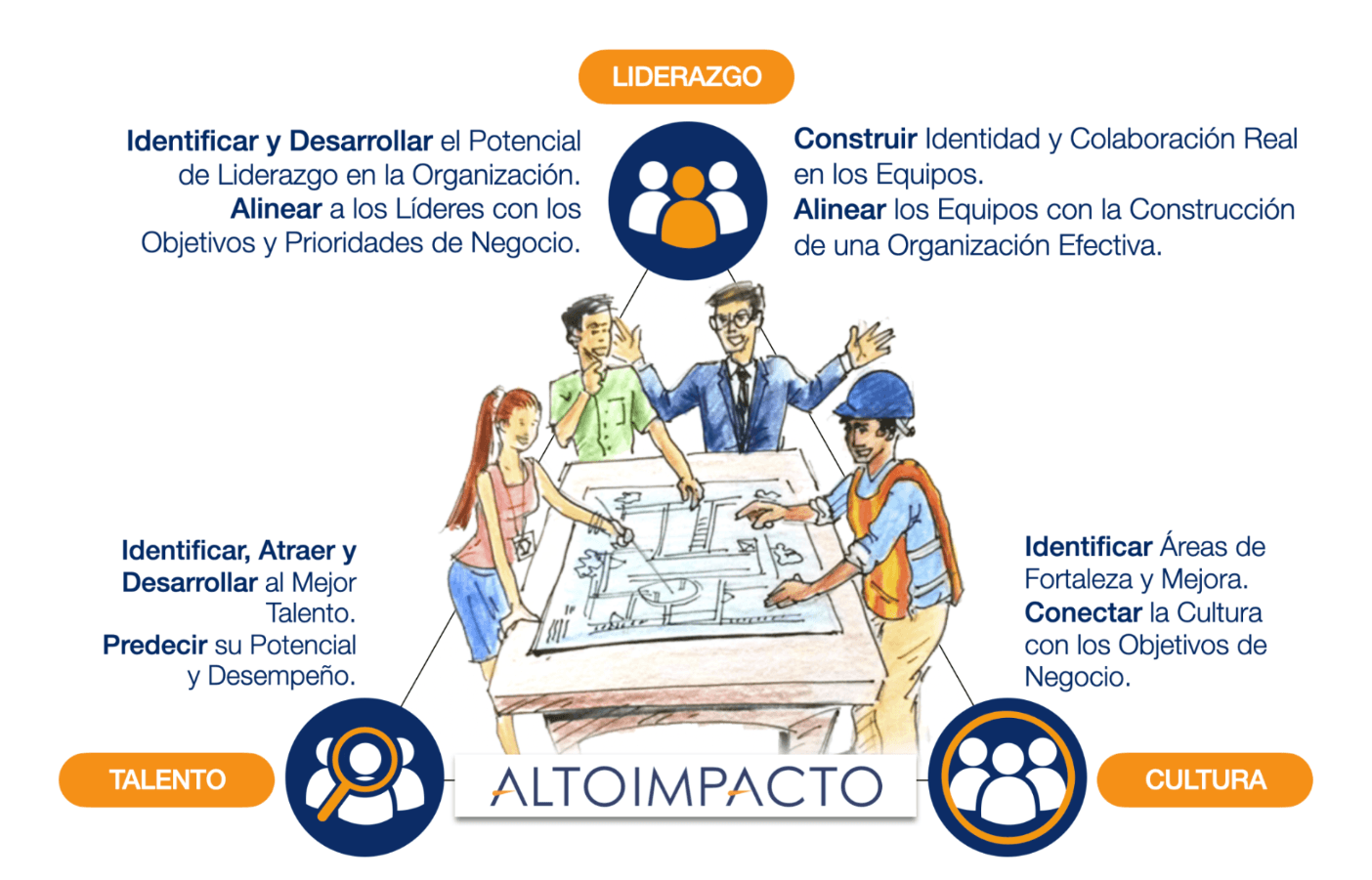 En Alto Impacto nos adaptamos a las necesidades y requerimientos de cada cliente, construyendo relaciones de largo plazo, por medio de la entrega de servicios de alta calidad y efectividad.